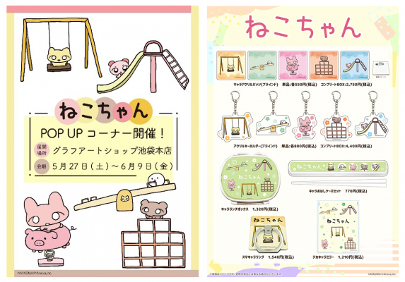 「ねこちゃん」のPOPUPイベントは今回が初開催!今回発売するのは描き下ろしイラストを使用した新商品。描き下ろしイラストは、「社会につかれたねこちゃんたちが、思い思いに公園でのんびり過ごす」がテーマとなっています。たまの息抜きに「ねこちゃん」グッズと一緒に過ごして癒されよう♪