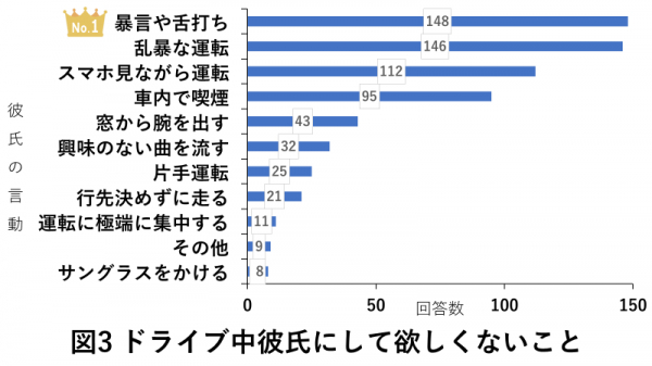 Q, ドライブ中に彼氏にして欲しくないことを選択してください