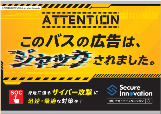 SOC(セキュリティオペレーションセンター)や脆弱性診断などのサイバーセキュリティ事業を展開する株式会社セキュアイノベーション(本社:沖縄県那覇市上之屋、代表取締役社長 栗田智明、以下当社)は、2023年4月26日より、沖縄県内バスにおいて車内ポスター広告の掲出を開始したことをお知らせいたします。