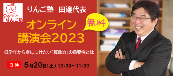 株式会社城南進学研究社(本社:神奈川県川崎市、代表取締役社長CEO:下村勝己)が運営する算数塾「りんご塾」は、2023年5月20日(土)、代表の田邉亨氏による「オンライン講演会2023」を開催します。