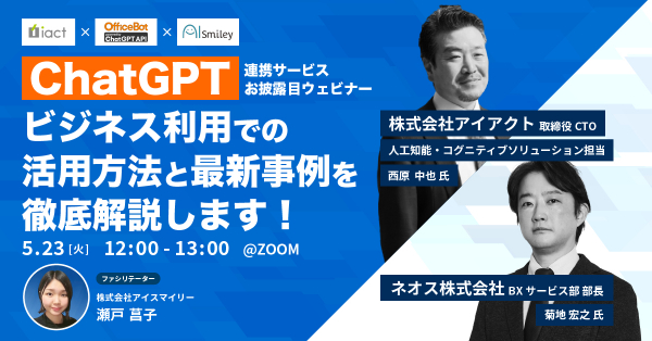 AIポータルメディアAIsmileyは、2023年5月23日(火)12時からChatGPT連携サービスウェビナーを開催します。