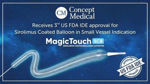 Concept Medical has received its third US FDA IDE approval for the MagicTouch - Sirolimus Coated Balloon in Small Vessel Indication.
