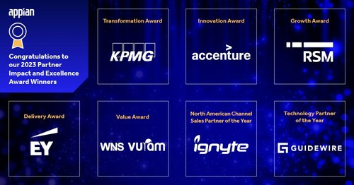 サンディエゴ、, 2023年5月4日 /PRNewswire/ -- Appian(NASDAQ: APPN)は本日、サンディエゴで開催されたグローバルAppian ワールド カンファレンスで 2023 年パートナー賞の受賞者を発表しました。本年の受賞者は、顧客の期待を上回り、サービス提供における優秀さを維持しながら、Appian Platformで革新的で、影響力の強いビジネス・ソリューションを生み出してきました。