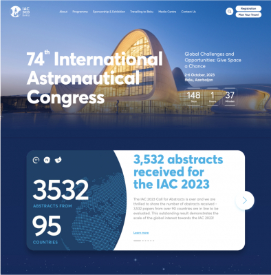 今年は、2023年10月2日から6日までアゼルバイジャンのバクーで、アゼルバイジャンの宇宙機関であるアゼルコスモス(Azercosmos)がホストを務め、「Global Challenges and Opportunities: Give Space a Chance(全世界的なチャレンジとチャンス: 宇宙は与えられたチャンス)」をテーマに、第74回国際宇宙会議(IAC 2023)が開催される予定です。