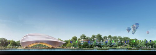 Artist’s impression of the 22.5-hectare planned site for Expo 2028 Phuket Thailand, located in the Maikhao Beach area, to the north of Phuket, representing harmony between People, Planet and Prosperity.