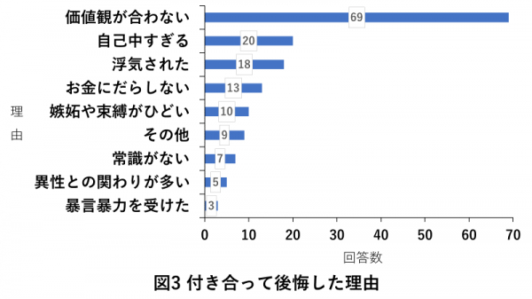 付き合ってから後悔したことがあるという女性を対象に、後悔したその理由について回答を求めました。