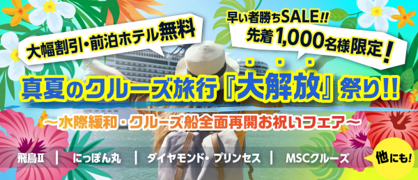 【真夏のクルーズ旅行『大解放』祭り~水際緩和・クルーズ船全面再開お祝いフェア~特集ページ】