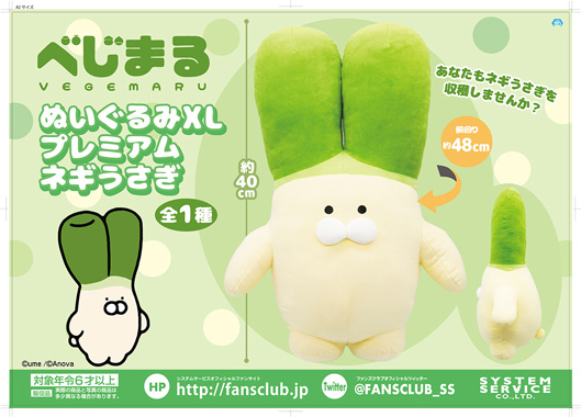 国内主要SNSで活躍するクリエイター総勢350以上との取引実績を持つキャラクターライセンスのプロデュース企業であるエイノバ株式会社(本社:東京都千代田区、代表取締役社長:安倍義人)に所属するクリエイター「うめぼしちゃん」が手掛けるかわいい野菜やくだもののキャラクター『べじまるシリーズのネギうさぎ』を起用したXLサイズの大型ぬいぐるみが、アミューズメント店舗にて本日以降、順次展開が開始されます。