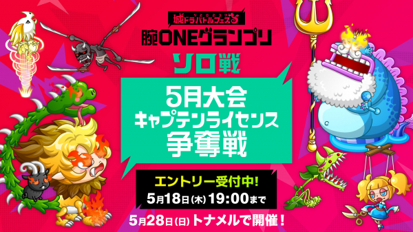 ◎「城ドラバトルフェス2023 腕ONEグランプリ グランドチームバトル キャプテンライセンス争奪戦」5月ソロ大会概要
