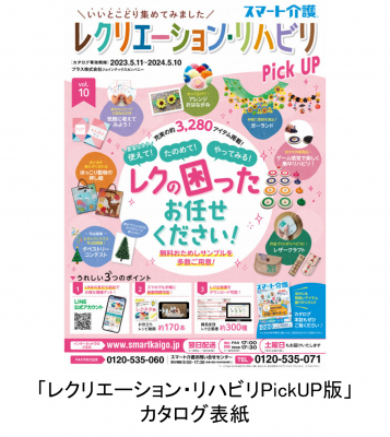 今回発刊するvol.10カタログは、施設で必要な商品を厳選、約23,000アイテムを取り揃えています。レク関連を抜粋したスタッフ向けの「レクリエーション・リハビリPickUP版」も同時発刊。約3,280アイテムを掲載し、カタログからQRコードで誘導される「レク企画書」や「レシピ動画」も好評です。
