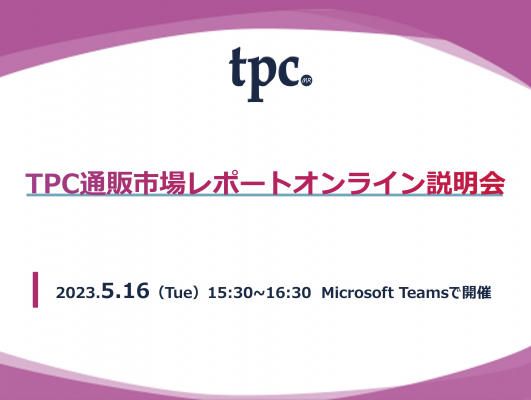 リサ・リューション事業を展開するTPCマーケティングリサーチ株式会社(代表取締役:松本 竜馬)は、2023年5月16日(火)にTPC通販市場オンラインレポート説明会を開催致します。