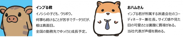 「ハケンはつらいよ ~インプる君の東海道中膝栗毛~」は、派遣社員ウリボウの「インプる君」がさまざまな派遣先で活躍する姿を描くショートアニメです。当社では、派遣社員として働く方々だけでなく、派遣社員さんと関わる多くの方にもご覧いただき派遣業界を広く知っていただきたいとの思いからこのチャンネルをスタートさせました。総合格闘技RIZINのコーナーに立つ初仕事から、派遣先のおばちゃんとの心温まるやりとり、WBCに影響を受けすぎて仕事に支障をきたすなど、インプる君の派遣社員としての仕事ぶりをお届けしています。