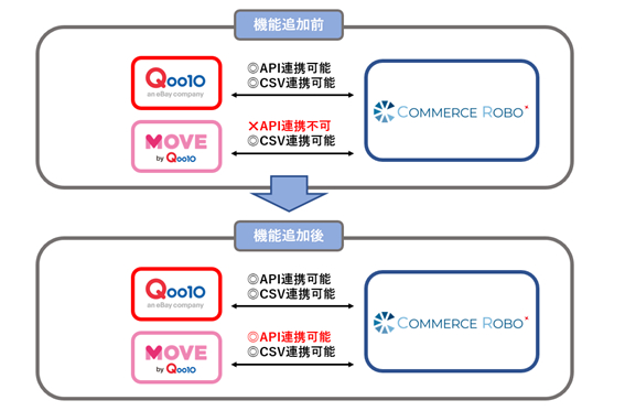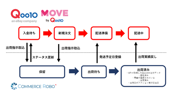 eコマースの自動化型DXサービスを提供する株式会社コマースロボティクス(本社:東京都港区、代表取締役:伊藤彰弘、以下 当社)は、eコマースの自動出荷システム「コマースロボ」がeBay Japan合同会社のネット通販サイト「Qoo10」において、ファッションブランドの公式ショップを集めたファッション専門サイト「MOVE(ムーブ)」とのAPI連携を2023年5月11日に開始したことをお知らせいたします。