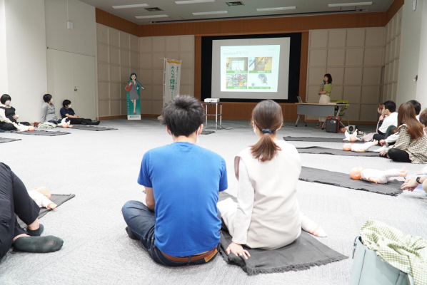 一般社団法人ボディセンス・インスティテュートは、妊娠出産に不安を抱える妊産婦とその家族向けに、マタニティ&産後ケアサービス『企業主導型 両親学級』を開催しました。5月14日(日)富山明治安田生命ホールにて行われた第5回の講座は「家事シェアをはじめよう」をテーマに開催いたしました。今回の参加者は、両親学級が始まってから初の全組、妊婦さん、そしてご夫婦揃っての開催となりました。前半には、一般社団法人ボディセンスインスティテュート 代表理事 高橋 由紀が、出産に向けた身体の準備や新生児の抱っこの仕方、お世話の仕方について紹介。後半には、産後ヘルパー派遣 浮田 美紀子 先生より家族との時間をどんなふうに過ごすかを軸に家事のコツを教えていただきました。