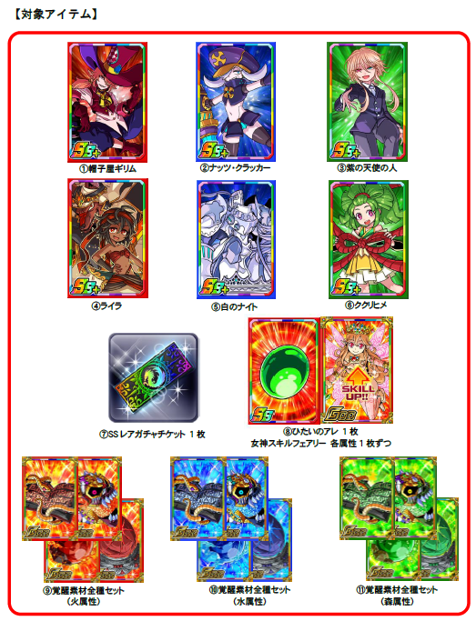 400リツイート達成:覚醒素材全種セット 各属性3枚ずつ