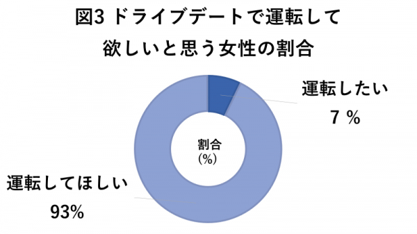 自ら運転したいと思う女性は7%とごくわずか。多くの女性は運転する側ではなく、彼氏にして欲しいと考えているようです。