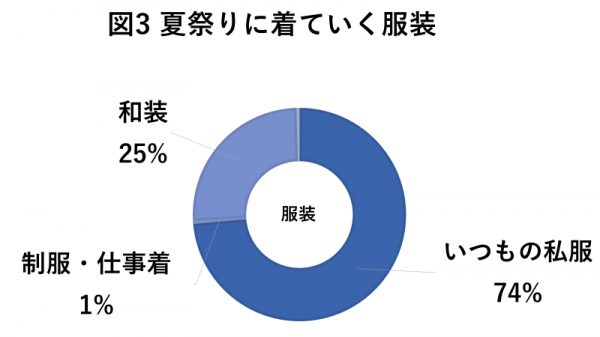 夏祭りに着て行く服装に関して質問したところ、「いつもの私服」と回答された方が多くみられました。
