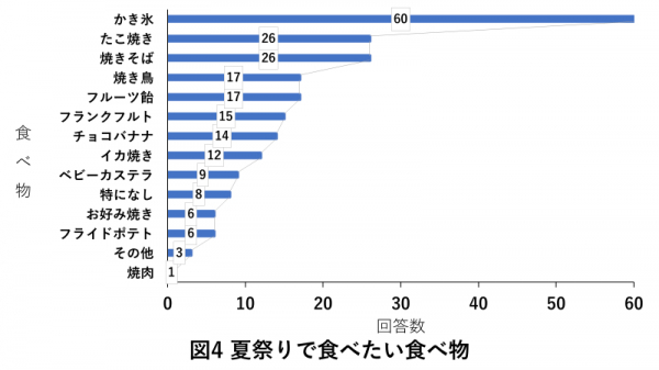 夏祭りに行った際に、食べたいと思う食べ物について伺いました。