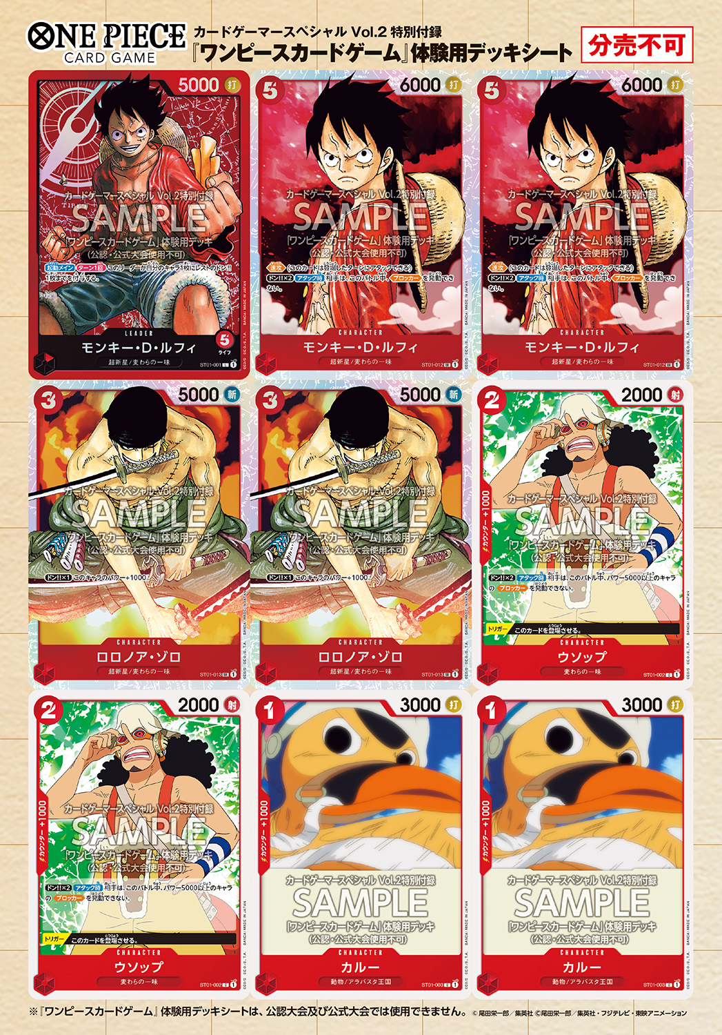 ・「ONE PIECE カードゲーム」体験用デッキシート