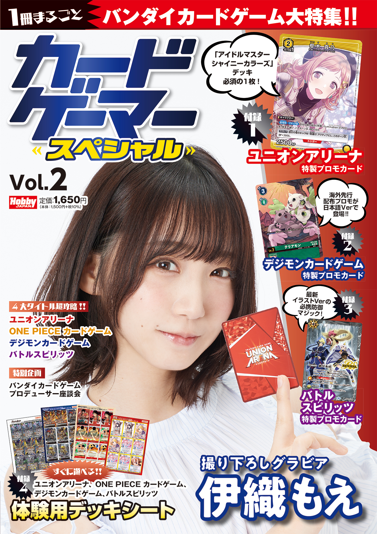「ユニオンアリーナ」「ONE PIECE カードゲーム」「デジモンカードゲーム」「バトルスピリッツ」の4タイトルの最新商品&攻略情報をたっぷりと掲載するほか、4タイトルのプロデューサーによる座談会記事等も掲載しています。