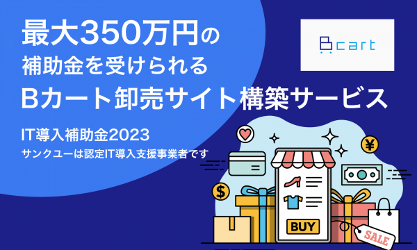 株式会社サンクユー(東京都品川区、代表取締役社長:堀川治)は、2023年5月16日、最大350万円のIT導入補助金の交付申請が可能な「Bカートによる卸売サイト構築」3次締切分を開始いたしました。