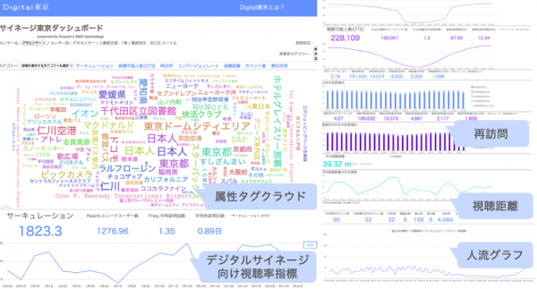 視聴時間、視聴距離、新規・再訪問、コンバージョンレートなどを活用し、データドリブンな屋外広告の運用を可能にします(https://digitaltokyo.io/signage/)。