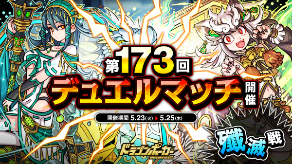 株式会社アソビズム(本社:東京都千代田区、代表取締役:大手智之)は、App Store・Google Playにて好評配信中のリアルタイム合体カードバトル『ドラゴンポーカー』で、2023年5月23日(火)より「第173回デュエルマッチ本戦」を開催いたします。