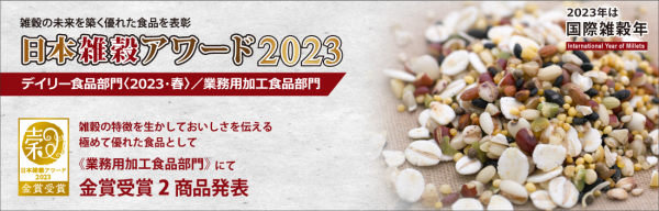 一般社団法人日本雑穀協会は、健全な雑穀市場の形成を促進する目的で設立した表彰制度「日本雑穀アワード2023」の業務用加工食品部門において、金賞受賞した2商品を本日5月25日(木)に発表いたしました。