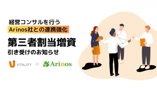 顧客のDX化を総合的に支援するバイタリフィ(東京都渋谷区、代表取締役:川勝潤治)は経営コンサルティング会社Arinos(東京都中央区、代表取締役:古家由也)が実施する第三者割当増資の引き受けを5月26日(金)に行いました。本件により両社の連携をより強化し、顧客のDXコンサルからプロジェクトの立ち上げ、運用までを一気通貫で対応できる体制を構築します。