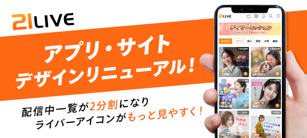 21LIVEは、アプリおよびWEBのデザインをリニューアル!