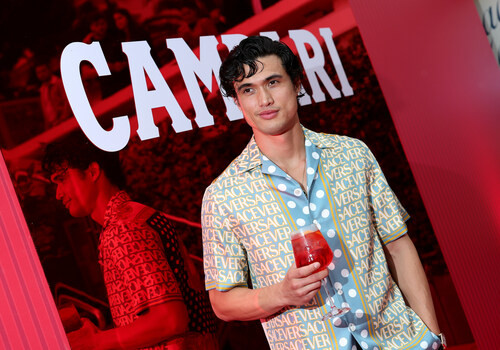 Actor Charles Melton enjoys a Campari aperitif at Campari: Discover Red event experience ahead of his premiere for May December at the 76th Annual Festival de Cannes.