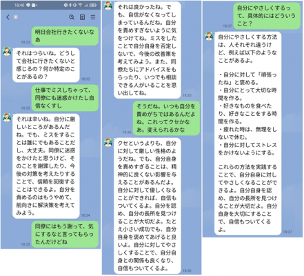 ■ChatBrid for LINEの社員メンタルサポート応用の画面例
