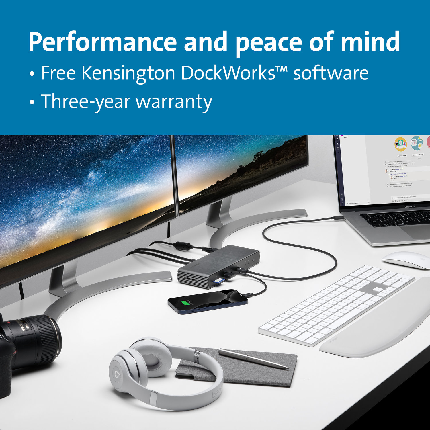 在宅勤務やホームオフィス環境でThunderboltテクノロジーを最大限に活用し複数のモニターへ拡張したり周辺機器と接続を可能にし、3年保証付なので安心してご利用いただけます。