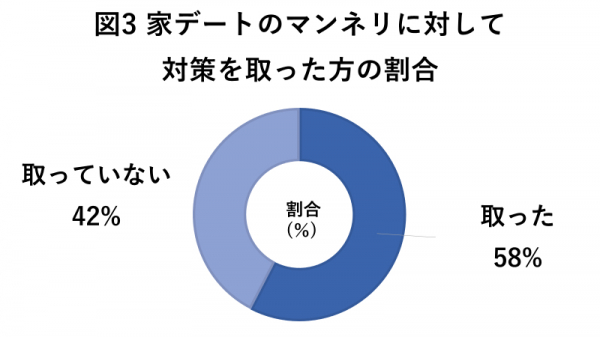 家デートでマンネリを感じたことがあると回答した方のうち、実際にマンネリ解消のため対策を取った方は58%。