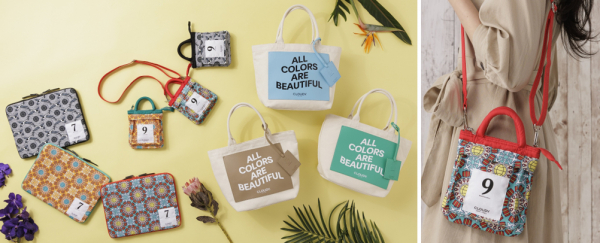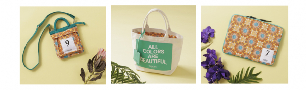 フロントポケットには、CLOUDYが大切にしている言葉の一つ “ALL COLORS ARE BEAUTIFUL”「色なんて関係ない、色にレベルはない、全ての色は美しい」のメッセージ入り。内側は再生ポリエステルにポップな柄をプリントしたテキスタイルを使用。中を覗くたびにワクワクさせてくれます。A4サイズがすっきり入るサイズで、持ち手は肩掛けでき、通勤・通学用にもおススメ。外側は再生キャンバス生地を使用した環境にも優しいバッグです。
