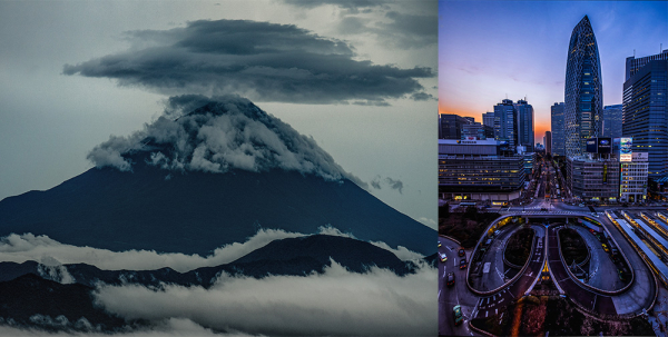 日本画風富士山写真と高層ビルからの超絶東京夜景。