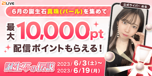 株式会社エムアンドティーティー(本社:沖縄県北谷町、代表取締役:井藤 三知子)が運営するエンターテイメント・ライブ配信アプリ【21LIVE(ニーイチライブ)】URL: https://21.live では、6月3日(土)から6月19日(月)に誕生石アイテム・パールの獲得数を競うランキングイベントを開催いたします。