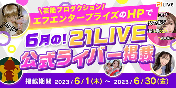 6月1日(木)より、21LIVEの6月度公式ライバーが芸能プロダクション・株式会社エフエンタープライズ(F.Enterpris)のホームページに掲載されます。