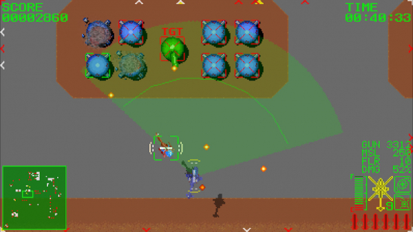 バルカン砲とロックオンミサイルを装備した戦闘ヘリを操作して、