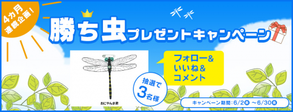 なお、本キャンペーンは暑さが続き、虫の活発化が見込まれる6月~9月の間、4ヶ月連続で実施します。継続的なプレゼントキャンペーンはゴルフ・ドゥとしては初の試みであり、今回はその第1弾として「勝ち虫プレゼントキャンペーン」を行います。