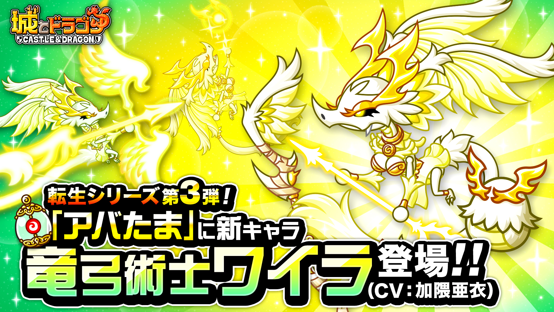 空から弓を射る竜族の弓術士「竜弓術士ワイラ」が「ワイラのアバたま」に登場します。通常スキルのほかに“降臨の儀”が使える特別な“転生シリーズ”のキャラです。