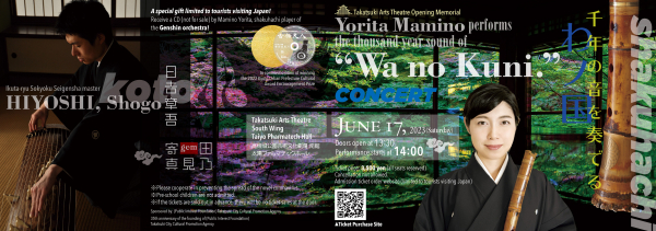 TOCOLがプロデュースする女性尺八奏者 寄田真見乃が、6月17日(土)、高槻城公園芸術文化劇場 南館 太陽ファルマテックホールで限定公演『(尺八の調べ)わノ国 千年の音を奏でる』を開催。(6月2日)