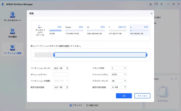 Part3:4DDiG Partition Managerを使ってパーティションを作成する