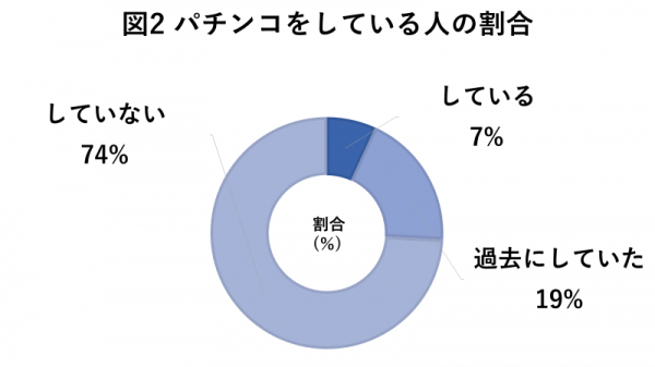 今回の回答者のうち、パチンコを現在している方は7%、過去にしていた方は19%を占めていました。