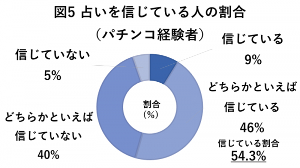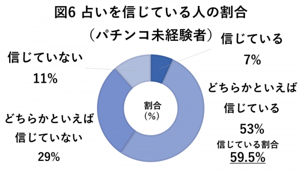 占いに対する信頼度では、パチンコ経験者、パチンコ未経験者ともに5~6割程度。