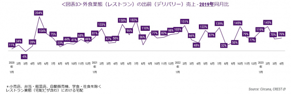 出前(デリバリー)は2019年同月比76%増