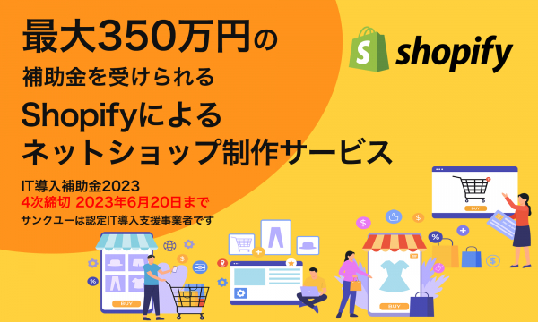 株式会社サンクユー(東京都品川区、代表取締役社長:堀川治)は、2023年6月5日、最大350万円のIT導入補助金の交付申請が可能な「Shopifyによるネットショップ制作」4次締切分を開始いたしました。