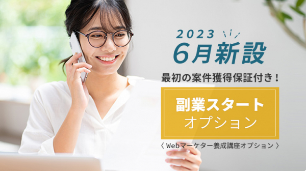 ・受講条件:Webマーケター養成講座を修了している方、修了予定の方。またはWebマーケター養成講座と同時申し込み。Webマーケター養成講座を受講していない方は、「副業スタートオプション」のみの受講はできませんのでご注意ください。
