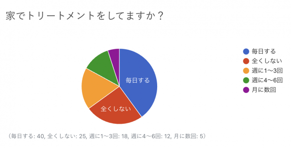 毎日から月に数回と頻度に差はありますが、定期的にトリートメントをしている人を合計すると75%という結果でした。