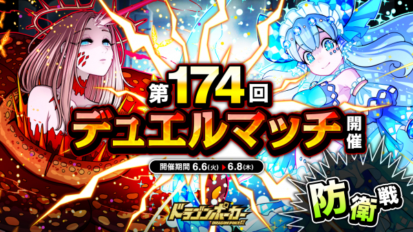 株式会社アソビズム(本社:東京都千代田区、代表取締役:大手智之)は、App Store・Google Playにて好評配信中のリアルタイム合体カードバトル『ドラゴンポーカー』で、2023年6月6日(火)より「第174回デュエルマッチ本戦」を開催いたします。